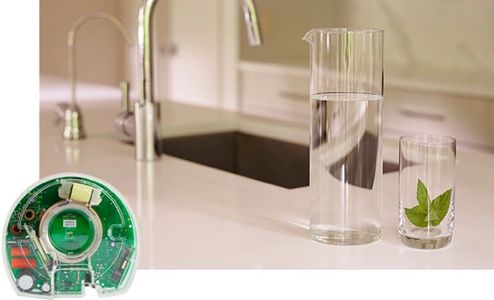 Our wireless inductive coupling completely isolates the UV bulb from the power source within your eSpring™ unit. The system is designed to be durable, with an easy-to-replace cartridge and only switches the bulb on when water is flowing, saving energy and keeping your water cool.